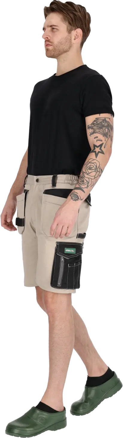 WORK TROUSERS - SUMMER LINE SAND SHORTS are a functional piece of workwear. These shorts are perfect for light assembly and finishing work. They are designed for construction work, roofing, and operating machinery and vehicles. Their cut ensures safety and comfort while also providing adequate ventilation.