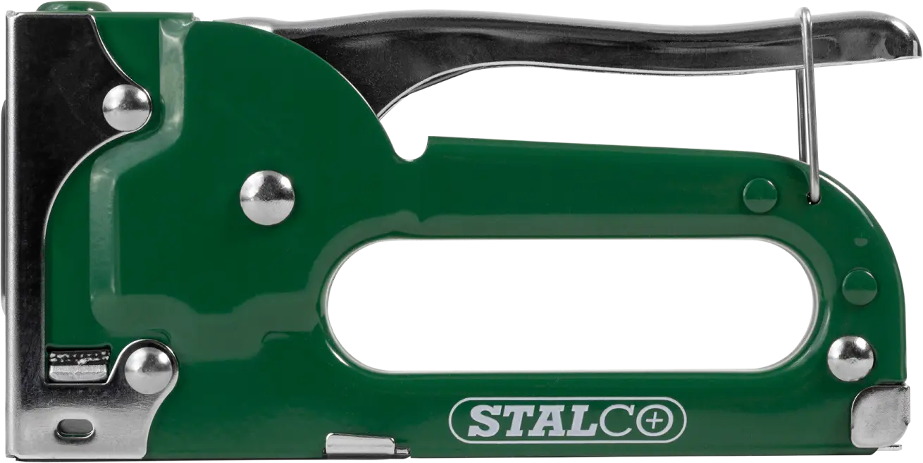 The STALCO upholstery staple gun features a steel body that protects it from mechanical damage, scratches, and cracks. A top-mounted handle is used to eject the staples. It supports standard STALCO staples in lengths of 4, 6, and 8 mm. This staple gun is ideal for occasional use as an additional tool.