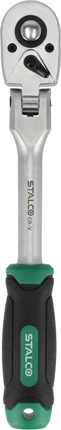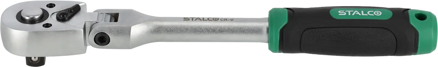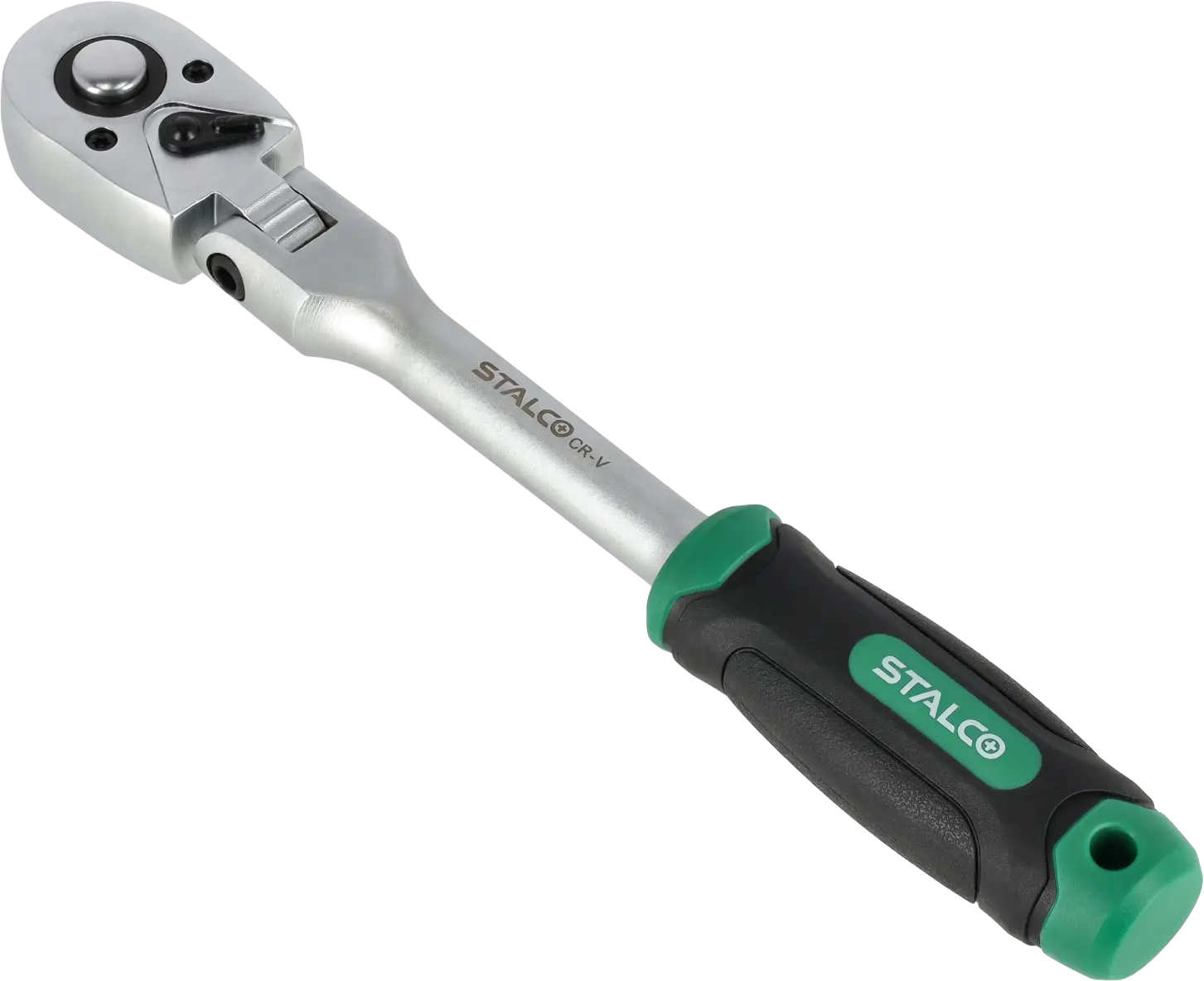 A tilting ratchet may be needed for many different mechanical tasks. This hand tool is designed for operating sockets and accessories equipped with a socket. It is used for loosening and tightening screws and other threaded elements. A distinctive feature is the hinge at the point where the head connects to the shaft, allowing the head to be tilted away from the handle axis. The STALCO tilting ratchet is a very durable tool, ideal for workshop use. It is made of chrome-vanadium tool steel with good strength parameters. The ergonomic handle allows for high-power operation. The ratchet features a half-inch tool shaft, which can be used to operate the most popular types of sockets.