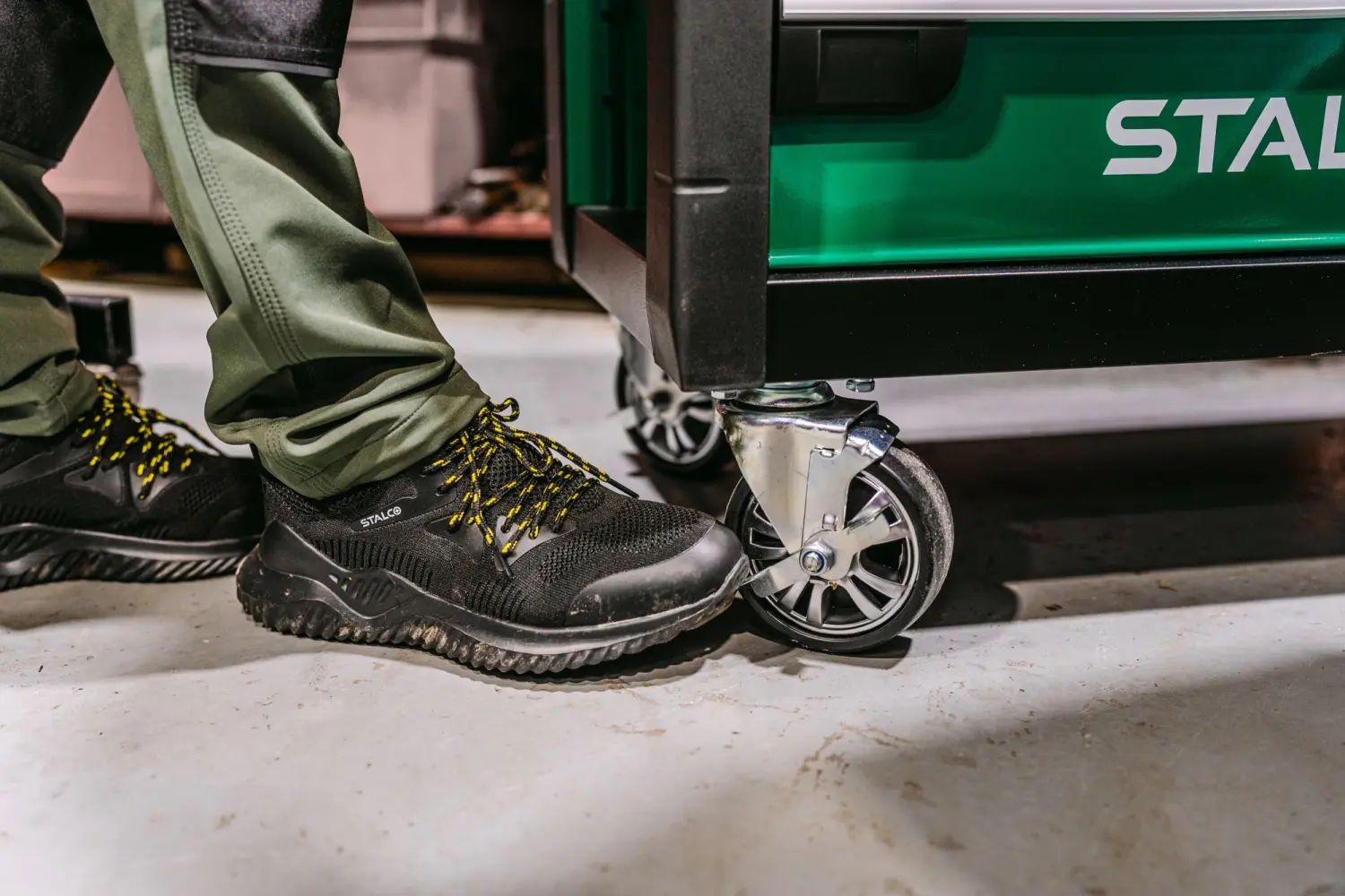This model features a unique EVA sole, formed from a soft and flexible foam material. It provides similar traction and comfort on both flat and irregular surfaces. It maintains its parameters in a variety of temperatures, making it suitable for outdoor work. The foam is easy to care for and keep clean, so the footwear will maintain its unique appearance for a long time. It is also an exceptionally lightweight material, thanks to which the TOMAS work shoe weighs very little.