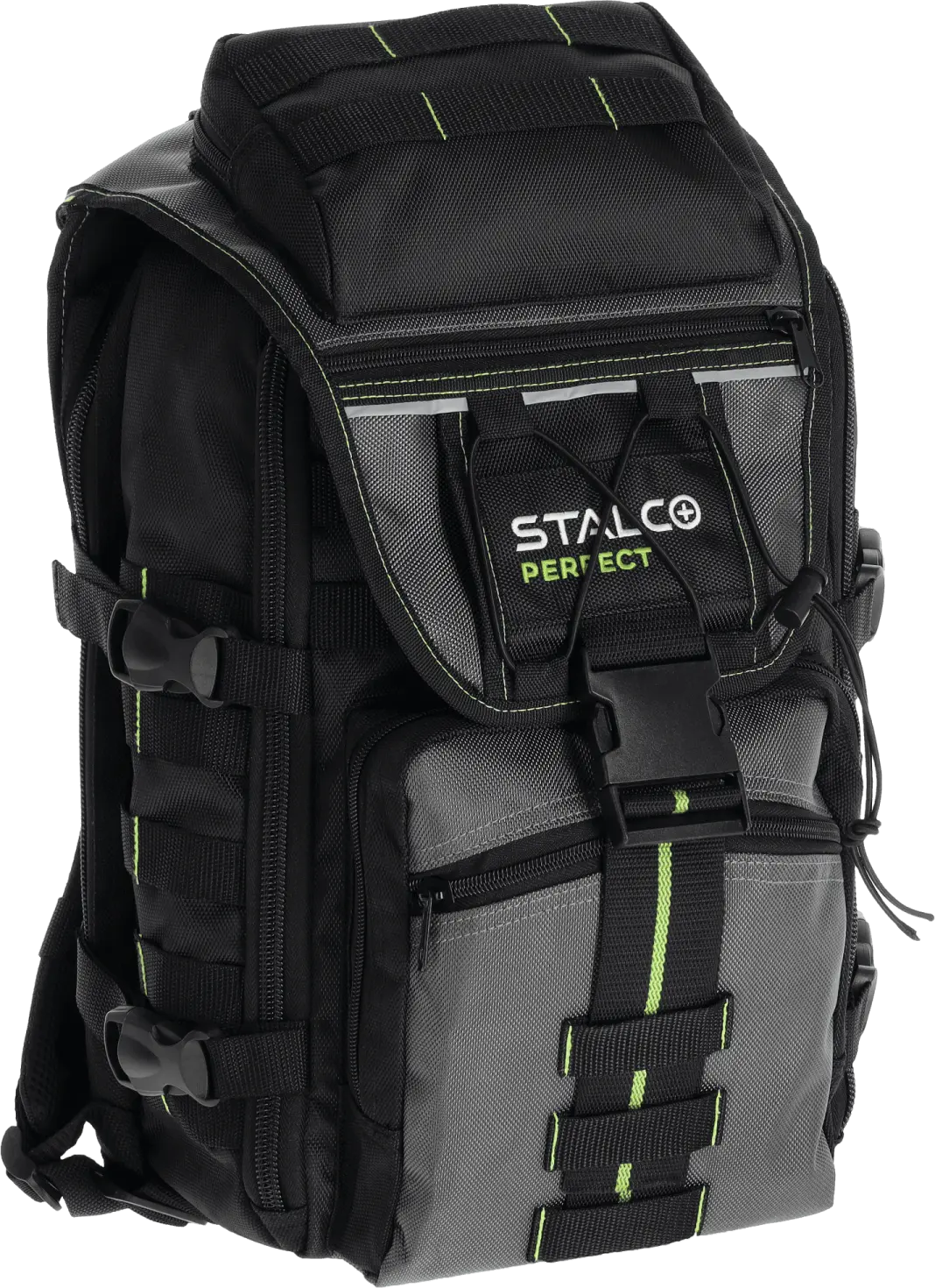 The "PNP28" tool backpack is a professional accessory useful for assembly and service work. It is made of durable and additionally reinforced polyester fabric. It is resistant to mechanical damage and easy to clean. It is divided into 4 external pockets, making it easy to organize necessary items. Inside, there is an additional laptop pocket and 18 smaller compartments for storing work accessories.