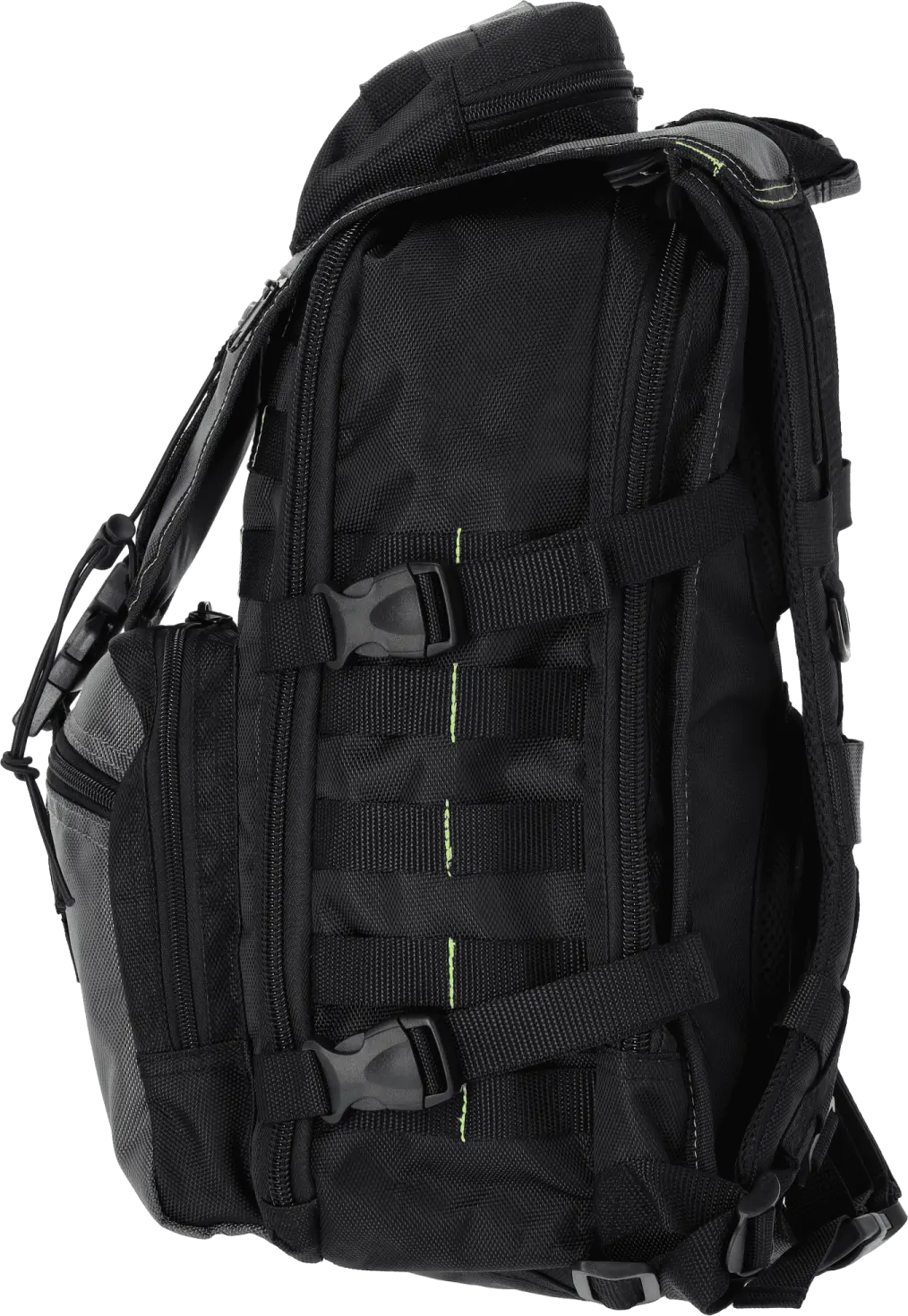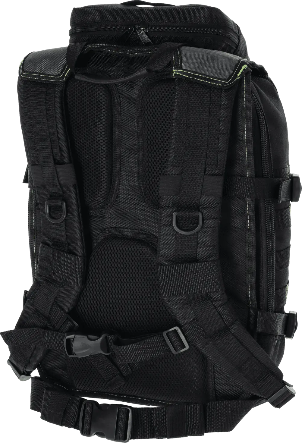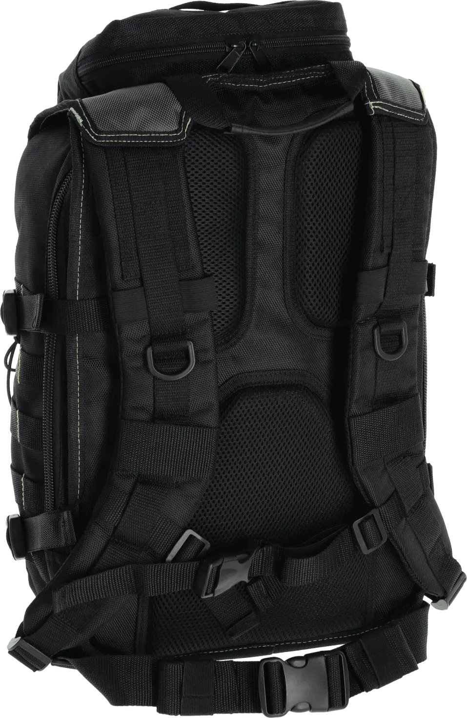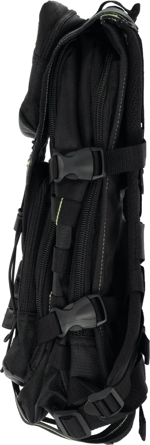 The backpack is not only functional but also comfortable for the user. The top section features a strong carry handle. The ergonomically shaped, contoured shoulder straps have a precise adjustment system. The backpack's comfort is enhanced by an additional adjustable chest strap and a system of soft, breathable back pads. Reflective elements ensure greater visibility after dark and improve the user's safety.