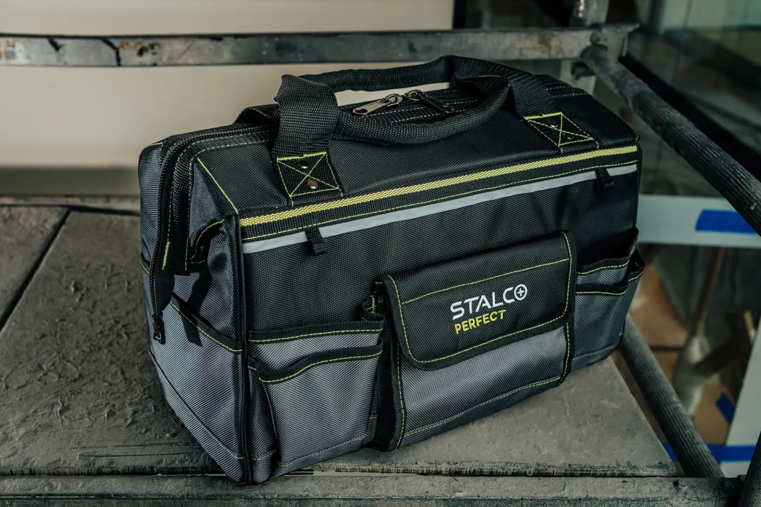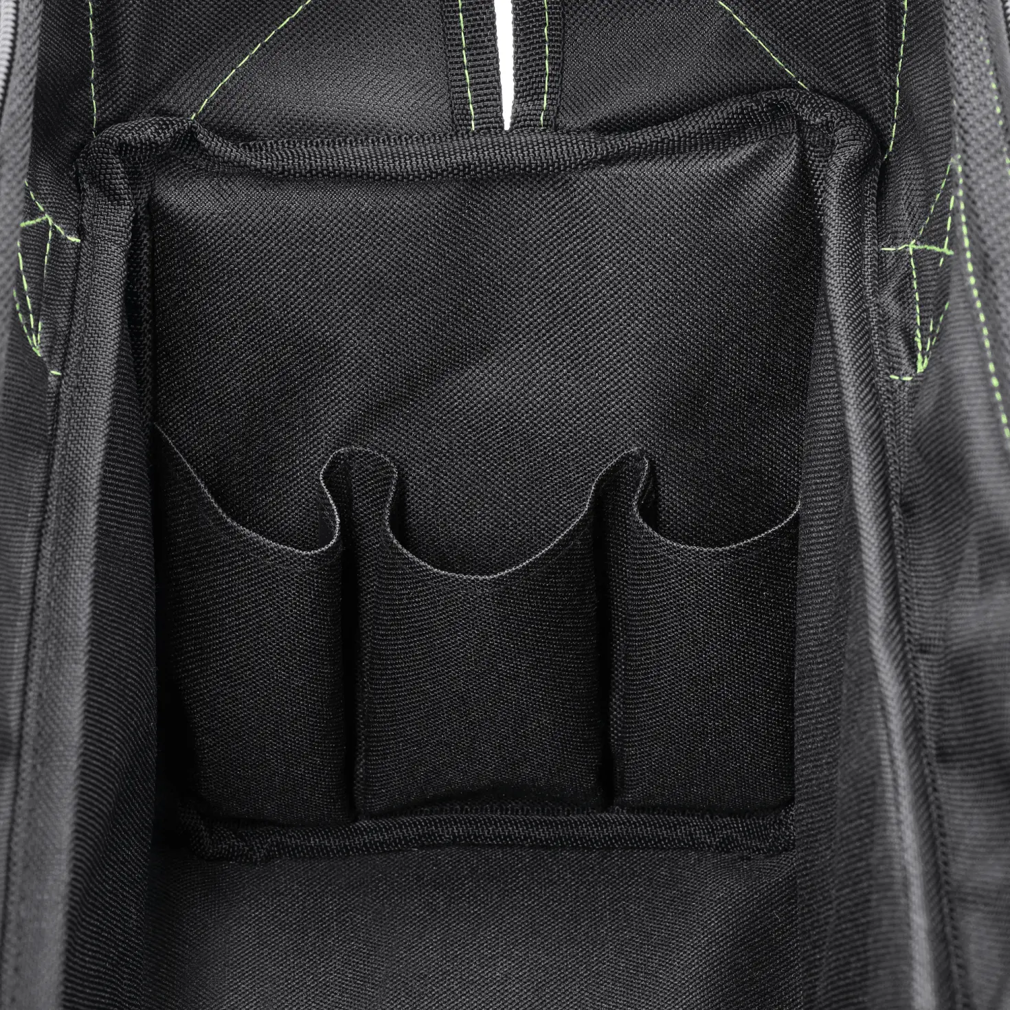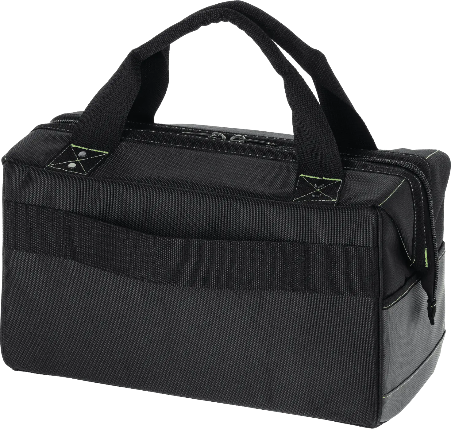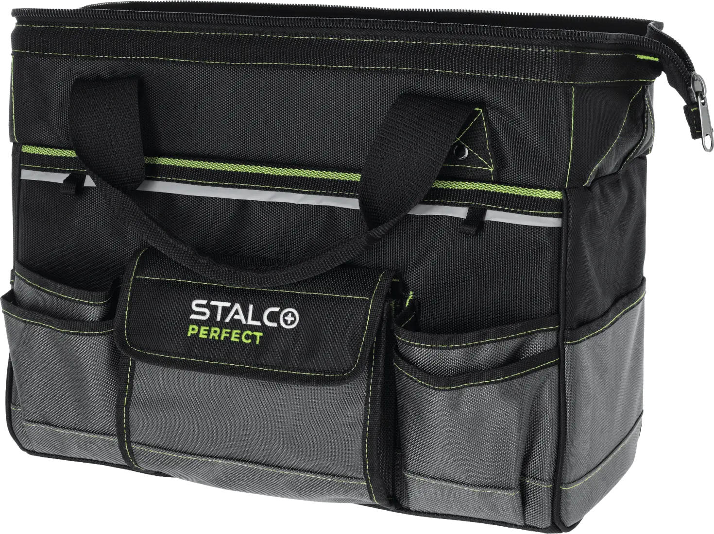 The medium-sized "TNP10M" tool bag is a product useful for field work. It is ideal for service technicians, mechanics, and assemblers. It is used to transport and store tools, and its design makes it easy to keep even the smallest accessories organized. The bag is equipped with 11 external pockets, the largest of which is zippered. The main compartment also features 6 additional pockets for small items. The rigid construction prevents spillage and protects stored items. The compartment closes with a durable zipper sewn with double reinforced stitching. The bag is carried by a handle at the top, secured with rivets. The high-quality polyester fabric used for the entire design ensures durability. It is resistant to abrasion and punctures, does not absorb moisture, and is easy to wash and clean.