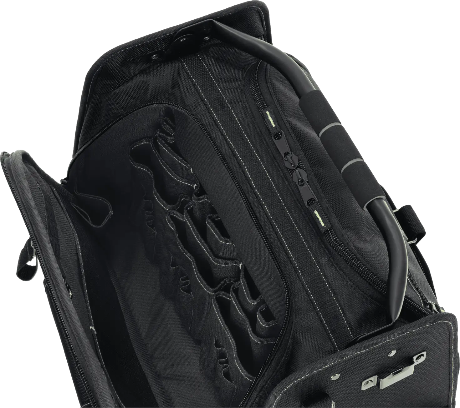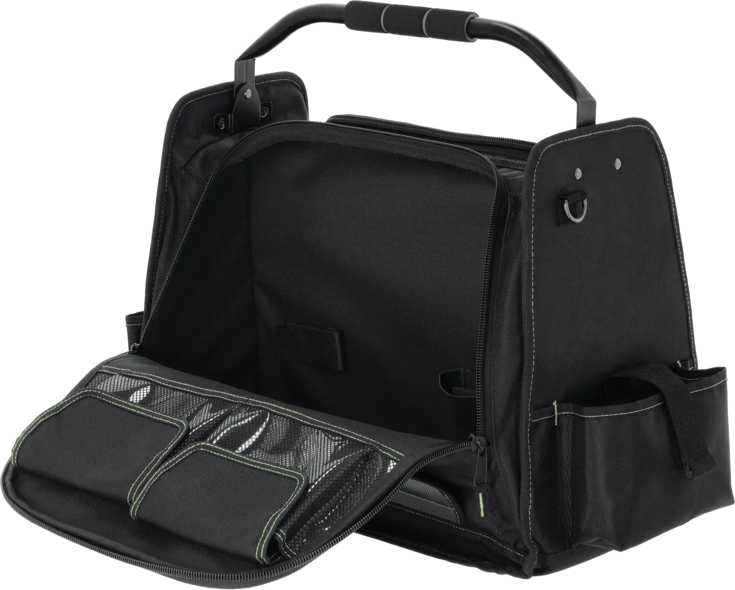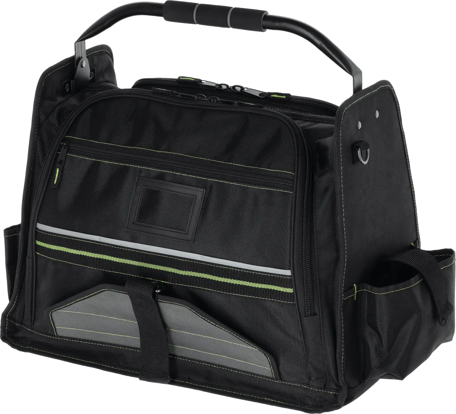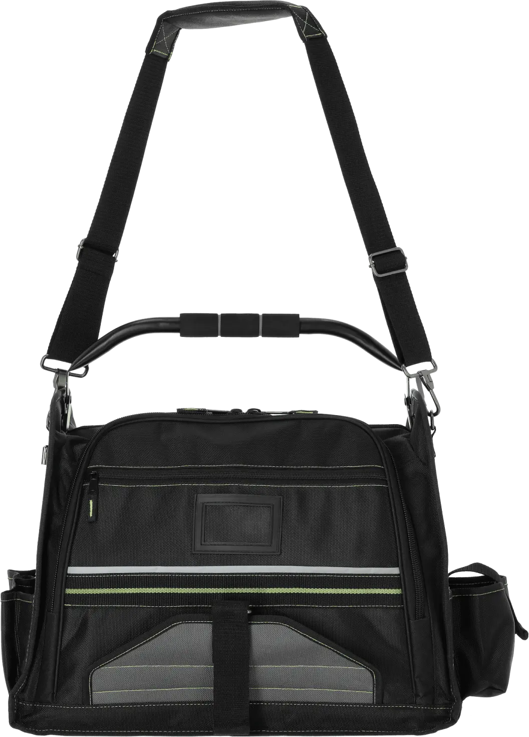 The "TNP20" tool bag from the STALCO Perfect line will prove useful in many industries. This product is designed for transporting tools and accessories helpful in the work of assemblers, mechanics, and service technicians. It is perfect for carrying heavy materials and lightweight tools. The exterior features 12 versatile pockets, an ID pocket, a tool clip and carabiner, and a tape measure hook. The reinforced structure is divided into two spacious compartments. Inside, there are 32 pockets for small items. The compartments are fastened with a strong zipper. A contoured handle with a soft foam lining is used for carrying the bag. The bag can also be worn over the shoulder using a strap. Reinforced polyester material and a robust finish ensure the bag's durability. The bag is resistant to tearing, abrasion, and dirt, making it ideal for harsh construction conditions. 5 rubber anti-slip pads at the bottom and reflective elements improve functionality.