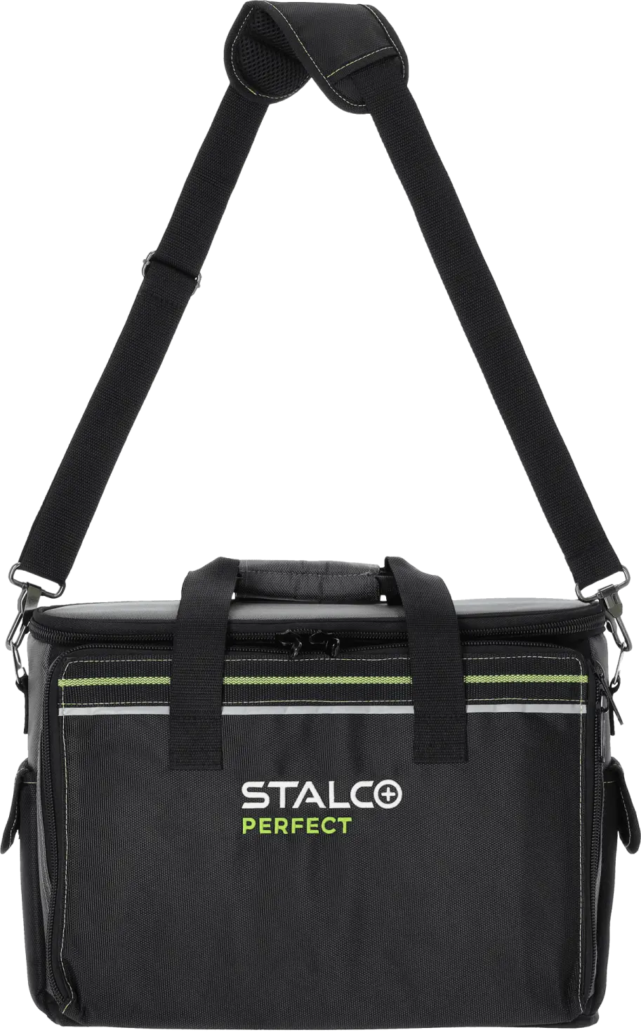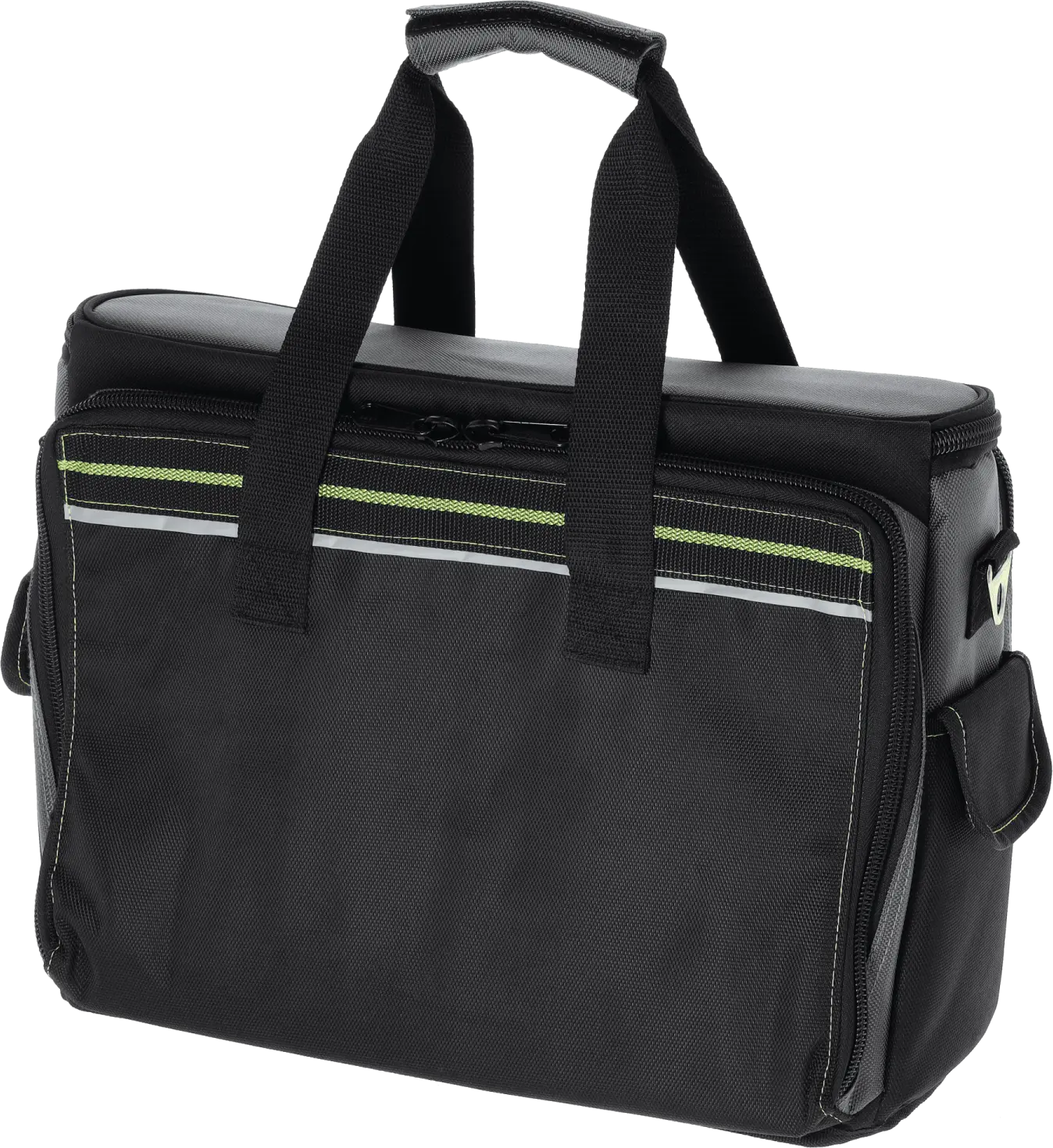 The "TNP22" tool bag is designed for professional mechanics, service technicians, and installers. The bag allows for efficient transport of essential tools, protects them, and helps keep them organized. Its rigid construction is equipped with a number of pockets for small items, including 7 external pockets and 17 internal pockets. The main compartment is divided into two sections by a removable divider. Furthermore, dedicated holders for screwdrivers, pliers, and combination wrenches are included, making it easier to maintain order and speed up work. Additionally, the bag features two document pockets, fastened with strong and durable zippers. The bag is very durable, made of high-quality, strong polyester material. It features a durable handle and an adjustable shoulder strap. The bottom is protected with pads, which protects the contents from getting wet and dirty.