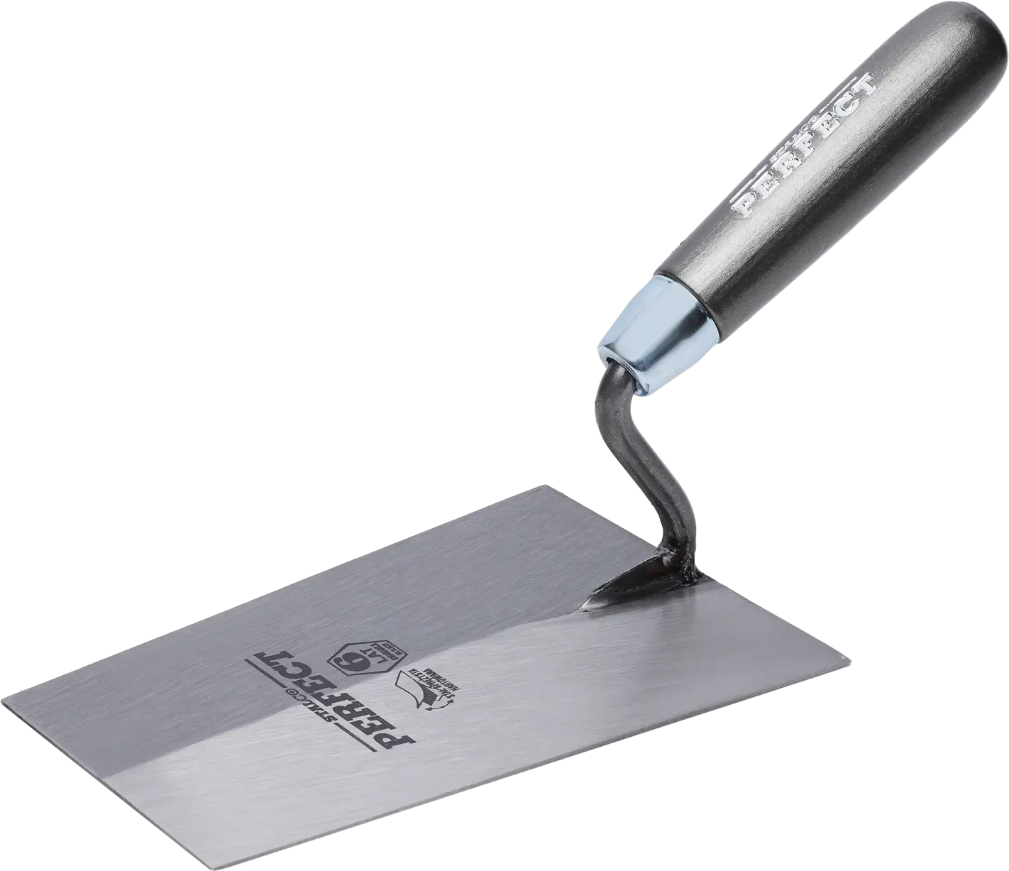 For versatile construction tasks, you'll need a sturdy trapezoidal trowel. This tool is designed for applying plaster, gypsum, and adhesives. It's primarily used for masonry and plastering work, where large quantities of the mixture need to be applied and spread. The STALCO Perfect trapezoidal trowel is made of 1.2 mm thick hardened steel. This material doesn't react with construction materials and ensures the tool's durability. The handle ends with a varnished beech roller. The two parts are joined by a joint, which is covered by a six-year warranty. The tool withstands intensive use in difficult conditions. The simple design and lack of nooks and crannies make it easy to clean the trowel after work is completed. This ensures long service life and efficiency for a wide range of tasks. Large trowels are available in two versions, with a working surface width of 160 and 180 mm.