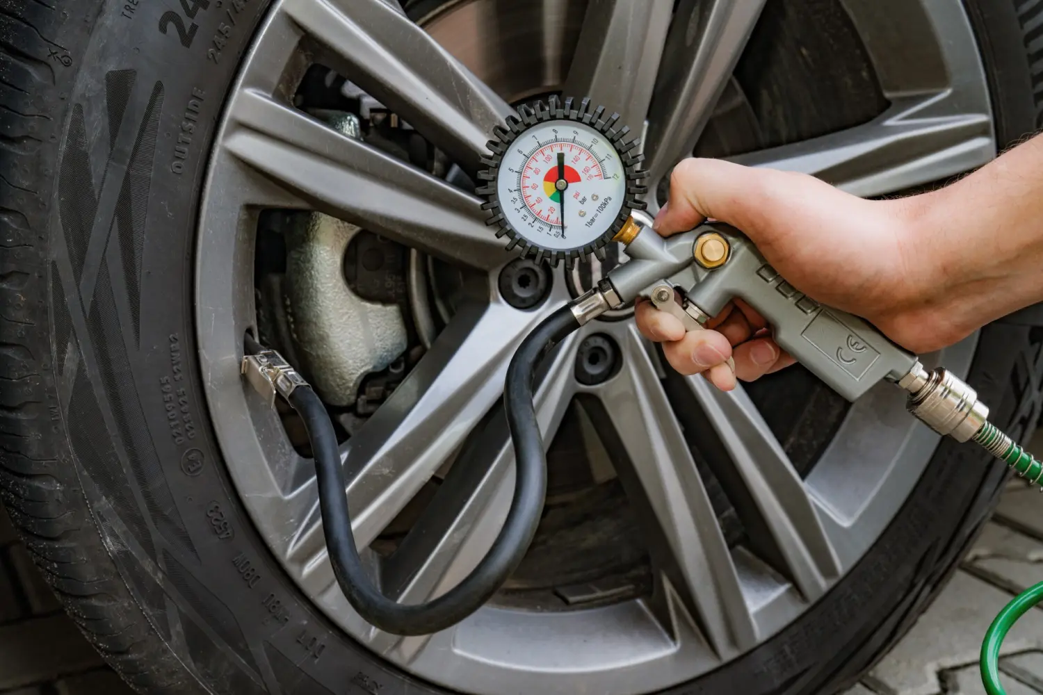 A tire inflator is a useful accessory. It's used for inflating bicycle and car tires. It's a useful piece of equipment for mechanical workshops and home garages. It can also be used to measure tire pressure, thanks to the clear dial. A quarter-inch quick connector at the bottom allows you to connect the accessory to a compressor. The tire inflator comes with a 400-millimeter rubber hose with a handle.