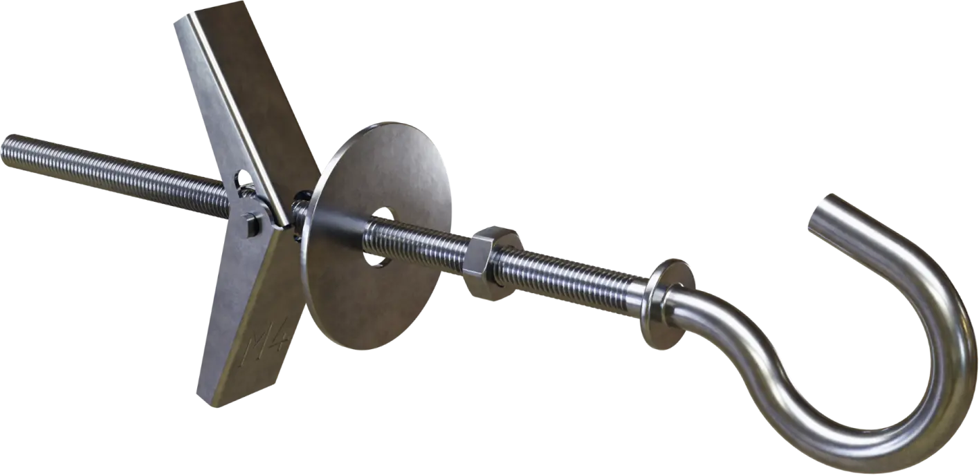 The PARASOLKA expansion anchor with a round hook is designed for installation in chipboard. It works well both for through-fastening to a single board and for materials with internal voids. The product can be used for fastening lightweight decorative elements, installations, and auxiliary structures.