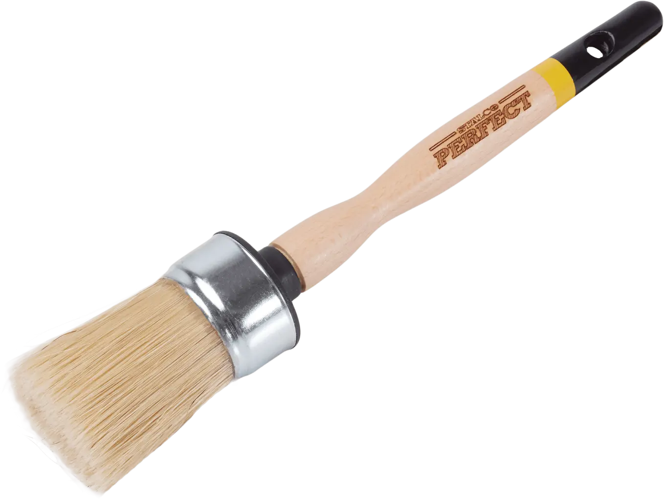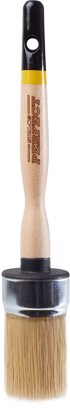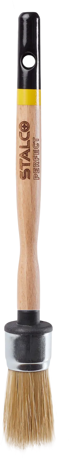 The UNIVERSAL round brush is useful for painting irregular surfaces. This tool is useful for renovation and restoration work. The round bristle arrangement is useful for applying paint to surfaces with many details and curves. It can be used for painting furniture, home furnishings, as well as balustrades and fences. The STALCO Perfect round brush is designed for applying all oil and nitro paints. It is easy to clean and remove paint residue. It is also very comfortable to use, and the narrow handle provides great comfort when applying paint. It loses bristle density slowly, so it will remain functional for a long time. Depending on the dimensions of the painted elements and the nature of the work, you can choose a round brush in various sizes. Individual products have bristle diameters ranging from 25 to 50 millimeters.