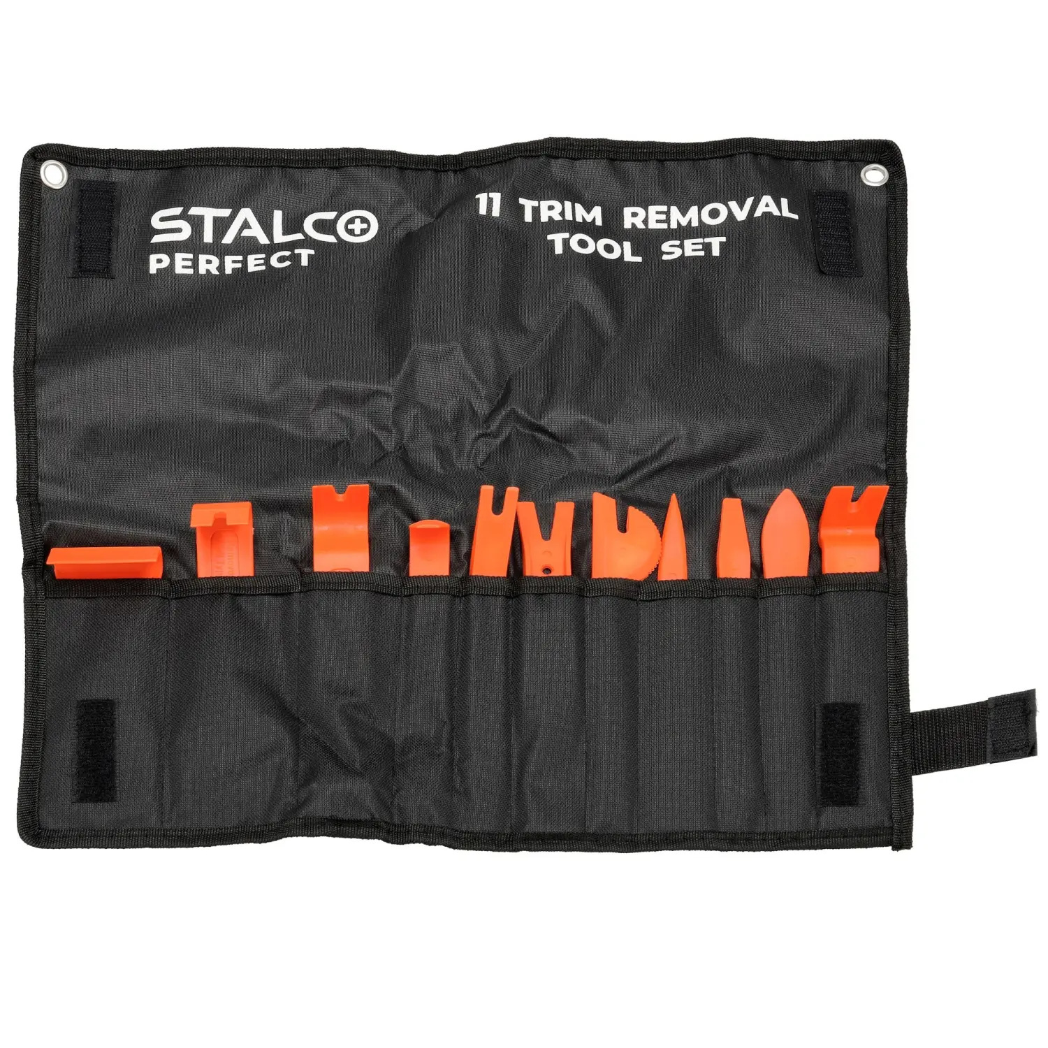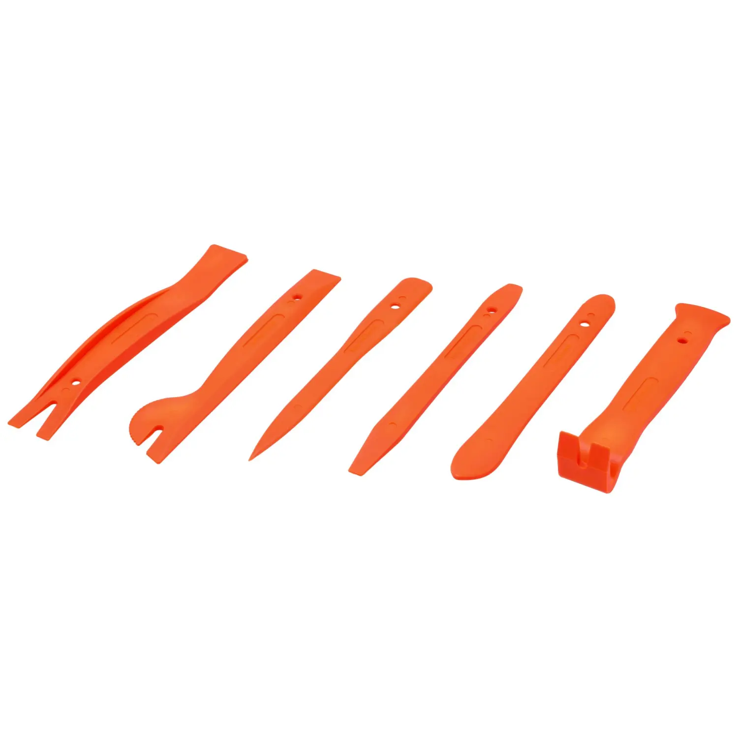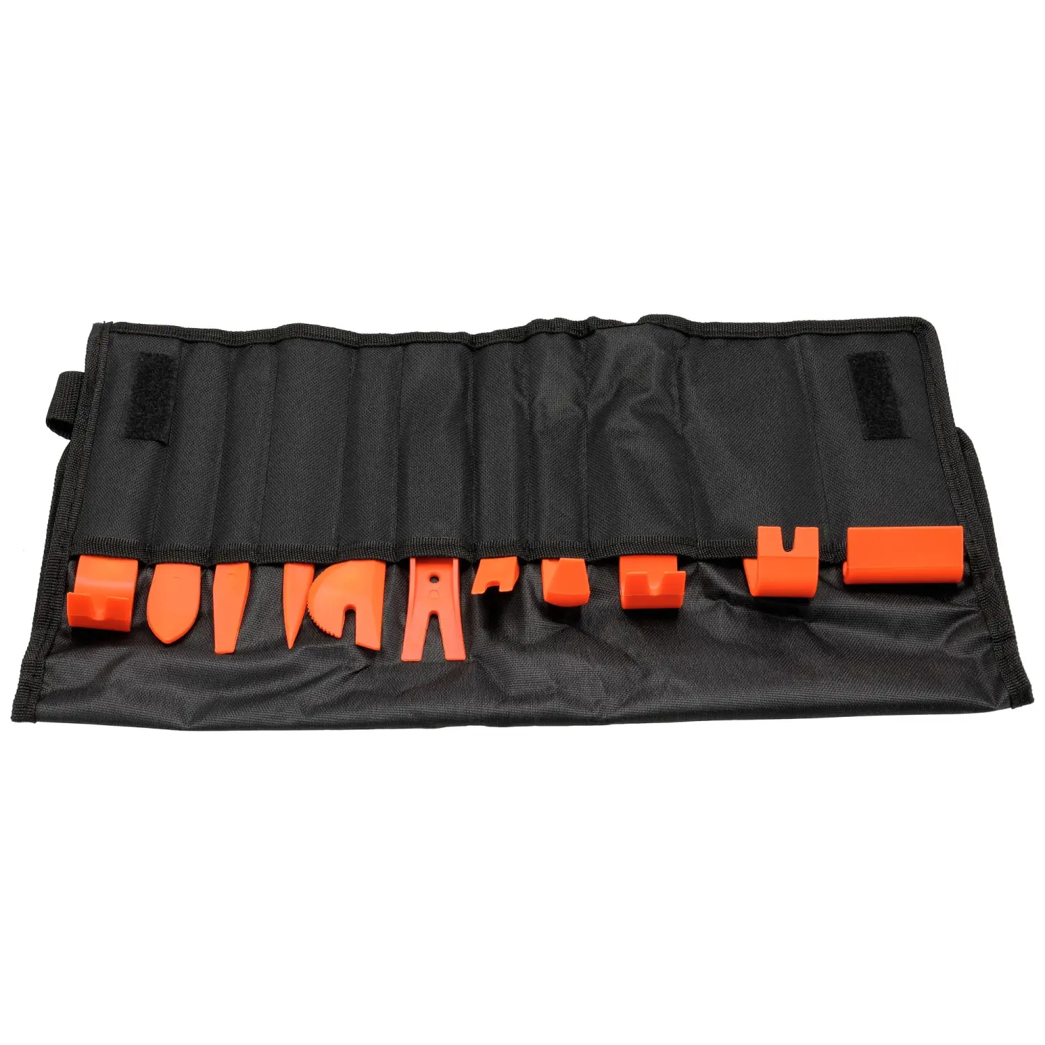 A set of pullers designed for removing moldings and upholstery in cars. The set contains 11 elements allowing for the removal of elements without the risk of scratching. The pullers made of durable nylon allow for comfortable and safe removal of upholstery elements.