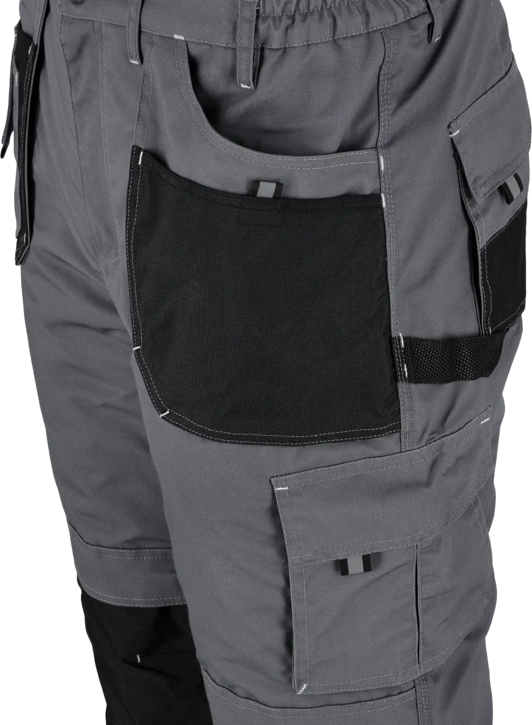 In demanding working conditions, the durability of the trousers is ensured by bolts placed in critical areas. They are located in the fly, crotch, pockets, and belt loops. The garment's tear resistance is achieved thanks to triple stitching and OXFORD 600D inserts. The knee pockets, back pockets, and front pockets around the waist are reinforced with this material.