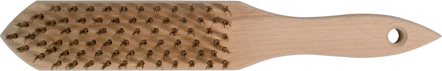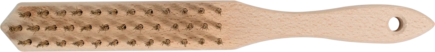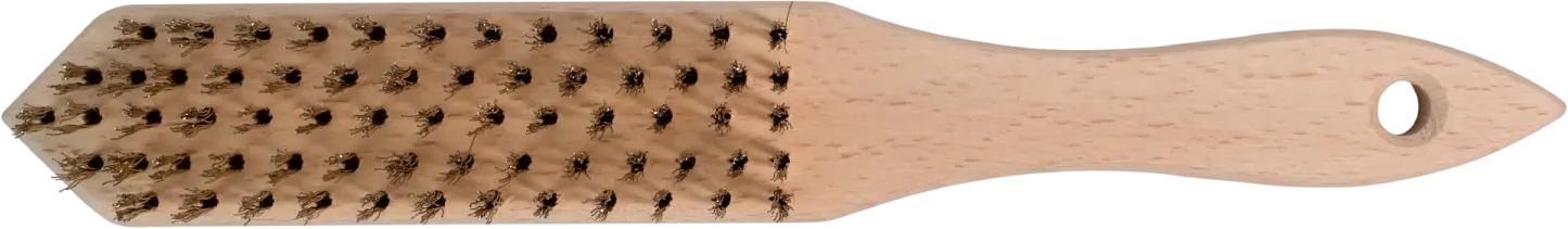 This universal wire brush is designed for manual removal of dirt. It is used in construction, renovation, and many household tasks. It is effective for removing paintwork and other heavy dirt. It can also be used for removing rusty corrosion. The STALCO wire brush has a wooden handle. It is contoured for a comfortable and secure grip. The top section features a hole for hanging or weaving a cord. Rows of brass-plated steel wires are responsible for the abrasive action. Depending on your needs, you can choose wires arranged in 3 to 6 rows. Each variant has a pointed tip, which facilitates working in corners.