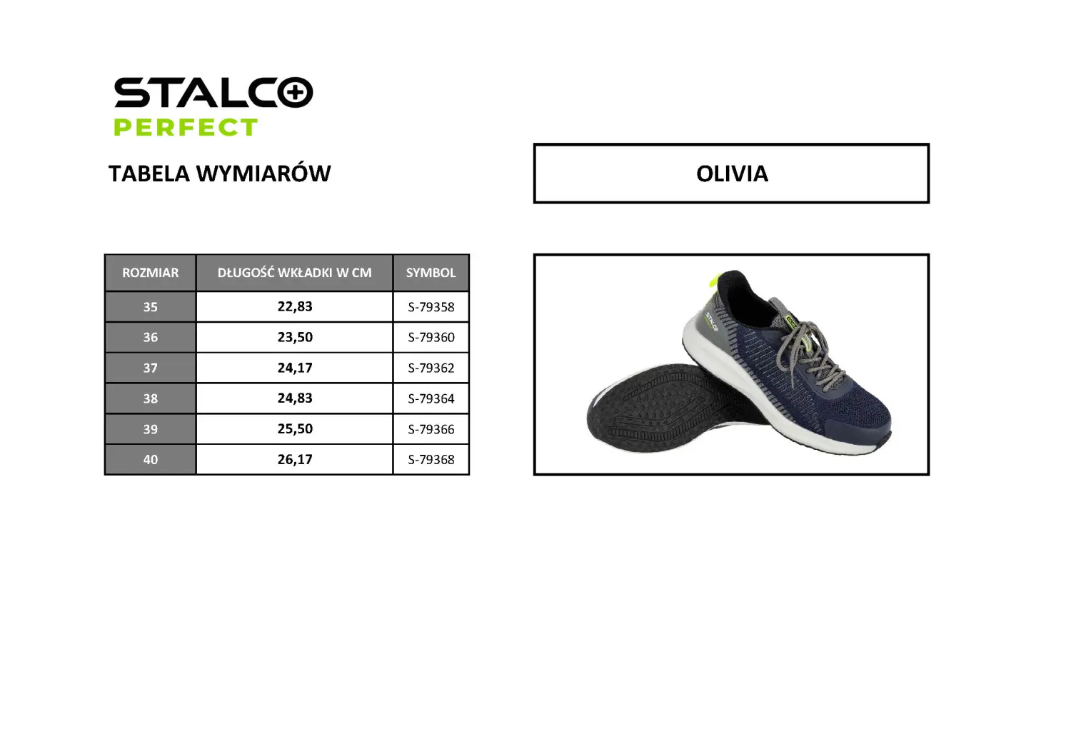 OLIVIA work shoes also guarantee comfortable wear. They are made with the challenges of long hours of work in mind. The interior features a soft lining that doesn't crush the foot and is additionally reinforced with abrasion-resistant material. A work shoe with a toe cap is lightweight and doesn't cause additional fatigue during long periods of work. The breathable material ensures proper ventilation and wicks away excess moisture and heat.